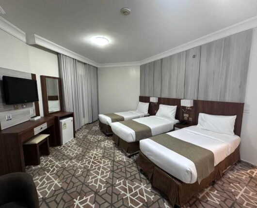 Al Fajr Al Badiea 2 Hotel Mecca is located in merely a 5-minute walk from the massive Masjid al-Haram Mosque and features 24-hour security and concierge service. Al-Zaher Palace Museum is placed approximately 10 minutes’ drive away, and Miqot makani is a 10-minute ride from the hotel.